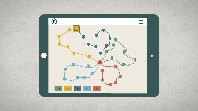 De applicatie helpt je dan de juiste route te bepalen inclusief de daarbij behorende reistijd.